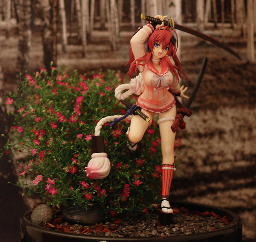 Jubei happily practicing her swordsmanship outside. Tried to find flowers that followed both the scale and the colour-scheme:)