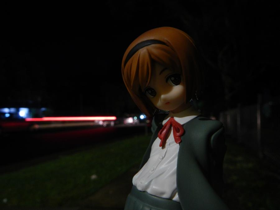 A young girl stands and embraces the night and its still and silent life.