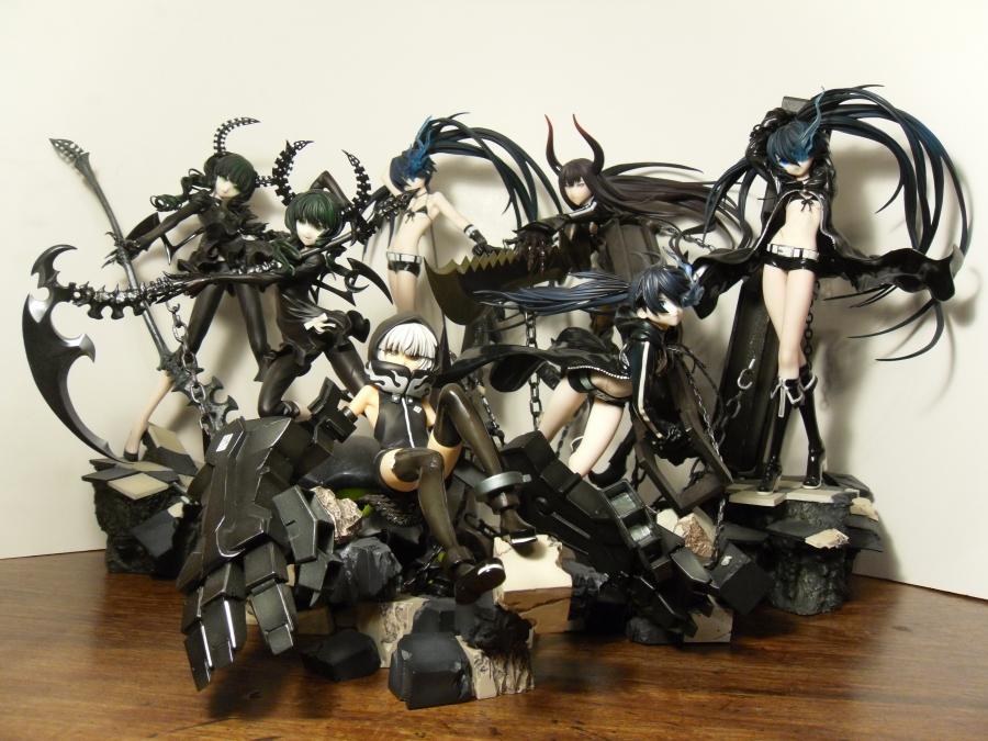 A collection of all 4 Animation Version BRS figures plus the 2 Original Versions and the Black Blade Black Rock Shooter figure.