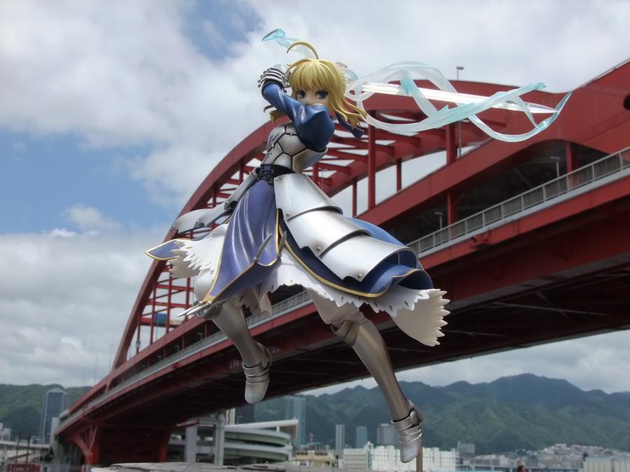 冬木大橋にセイバー降臨し、風王結界にて梅雨空を一掃するの図です。