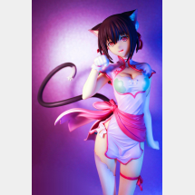 メイドさん黒猫が姿見の前でくるっとまわってスカートが...